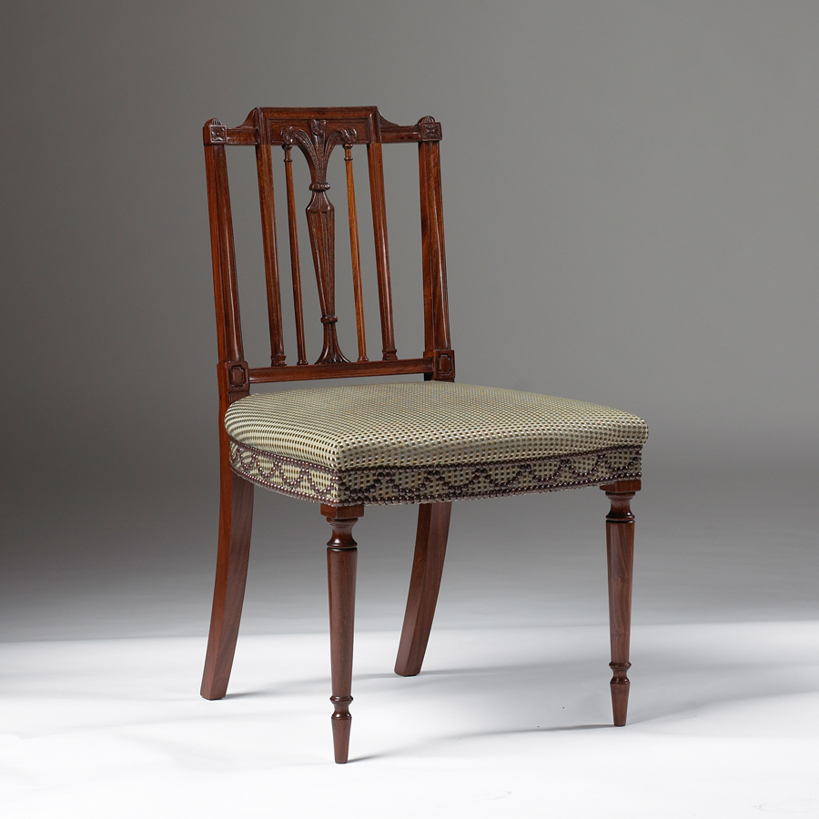 Classic Prince of Wales Feather Side Chair is named because of the carved motif of the three curled ostrich feathers which was the emblem of the future King George IV.