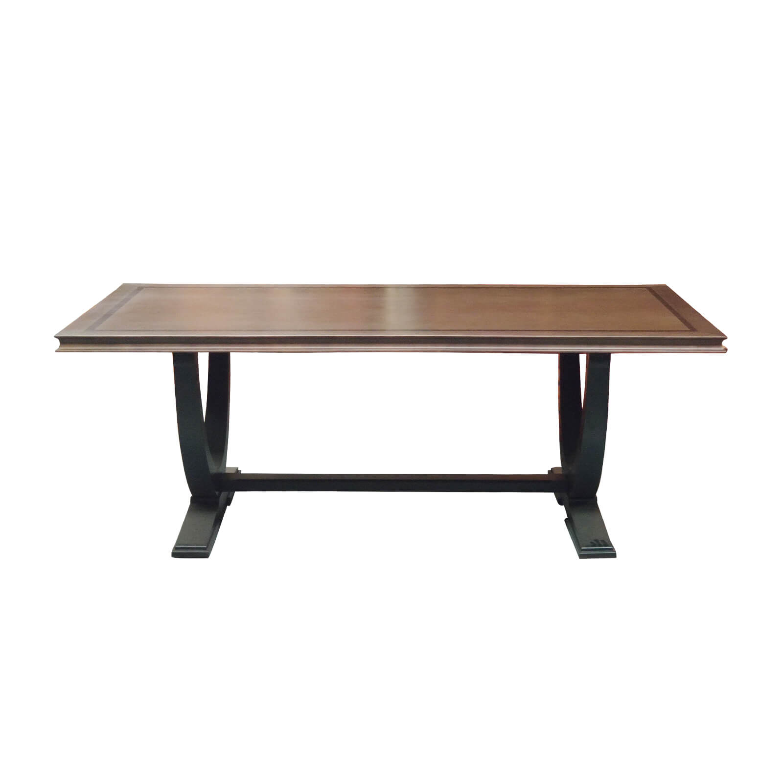 The top has an inlaid band of kingwood to complement the polished striated grain of the surface.