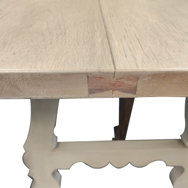 The oak plank top is polished and also has the added detail of the butterfly tongue detailing visible at each end.