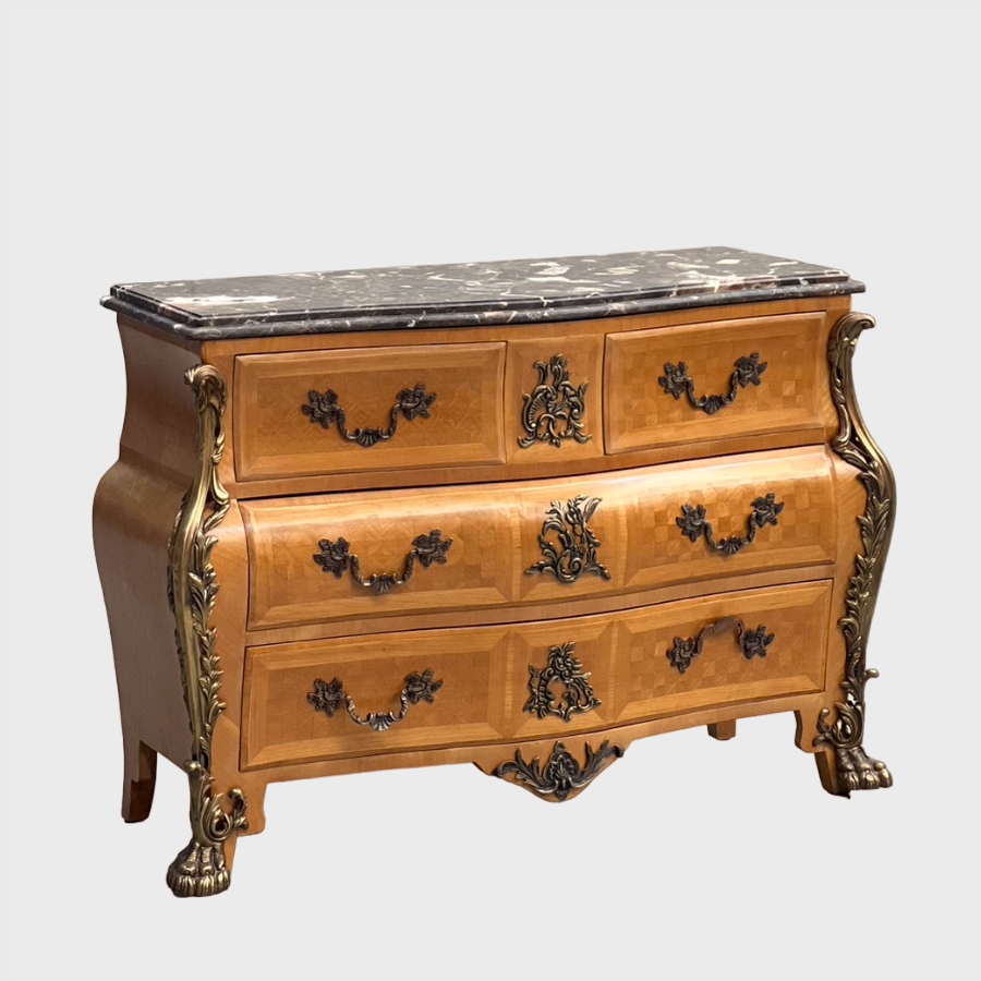 Regency Commode Cabinet with a refined design, beautiful, eye-catching with brass handles. Beautiful wood grain top marble with Signature collection.