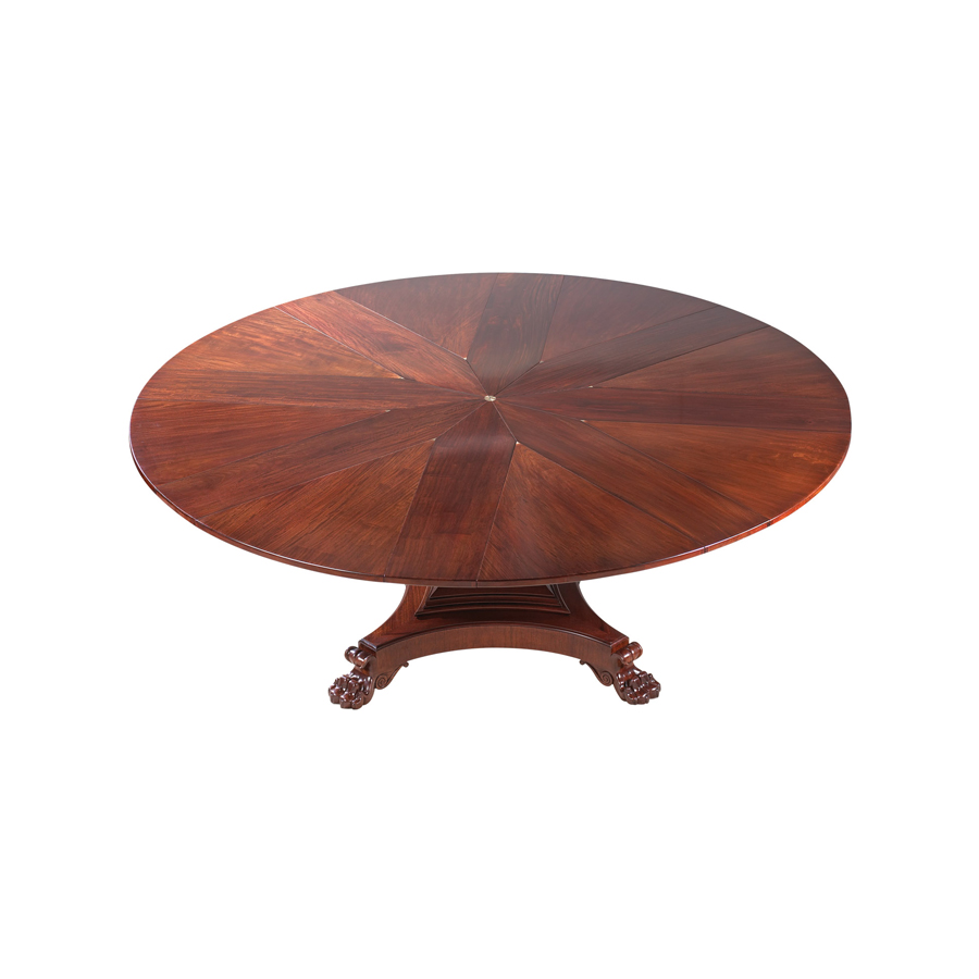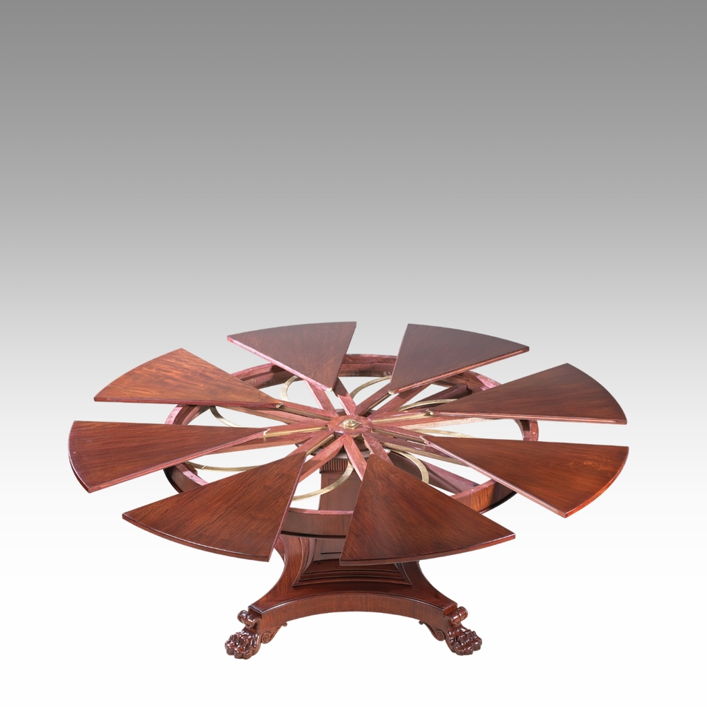 Many makers have made variations of his design since 1835 when Robert Jupe patented the ingenious method of extending a round table, of which an antique version commanded a price in the region of USD350,000. The Classic Chairs Table, however, follows his design exactly and so produces a ‘real’ Jupe table. Having had the very considerable advantage of owning two of the few known original tables made by Robert Jupe, Classic Chairs has been able to ensure the authenticity of his unusual table.